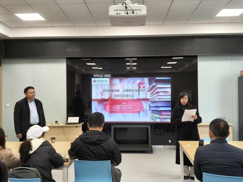 为精准对接食品领域国家战略导向,全面提升师生学术研究站位与论文创作水平,2025年12月18日,食品科学与工程学院于钧智楼A201活动室成功举办“紧跟国家战略,加强理论深度研究,发表高质量论文”专题讲座。讲座由北京食品科学研究院副总工程师、中国食品杂志社社长孙勇研究员担任主讲嘉宾,王星敏院长主持。本次专题讲座为全院师生呈现了一场兼具战略高度、理论深度与实践价值的学术盛宴。