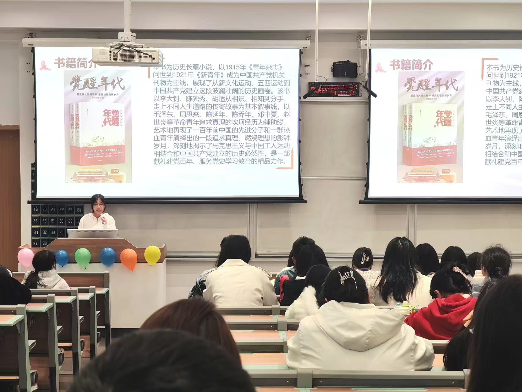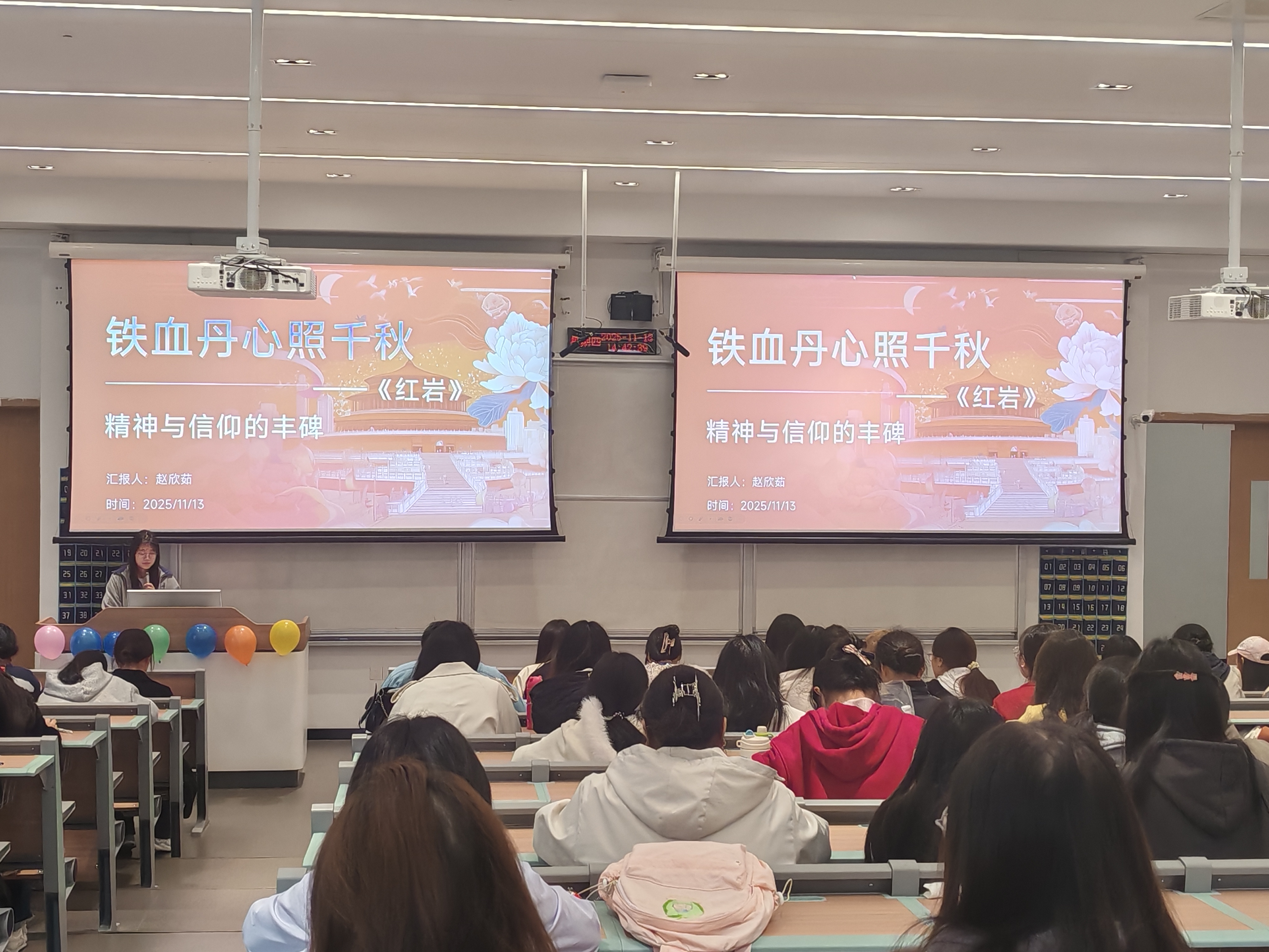 2025年11月13日,为深入推进“一站式”学生社区育人体系建设,持续擦亮“励学社区”品牌,食品科学与工程学院依托励学社区平台,在宏智楼211教室成功举办“以书为媒忆峥嵘,勇担使命向未来”红色书籍分享活动。本次活动作为“阅动励学,读领风华”系列读书分享会第一期,吸引了众多同学踊跃参与。八个参赛小组依次登台,通过精彩纷呈的PPT展示,引领在场师生共品红色经典、共忆峥嵘岁月、共话使命担当,充分展现了社区文化育人的活力与实效。