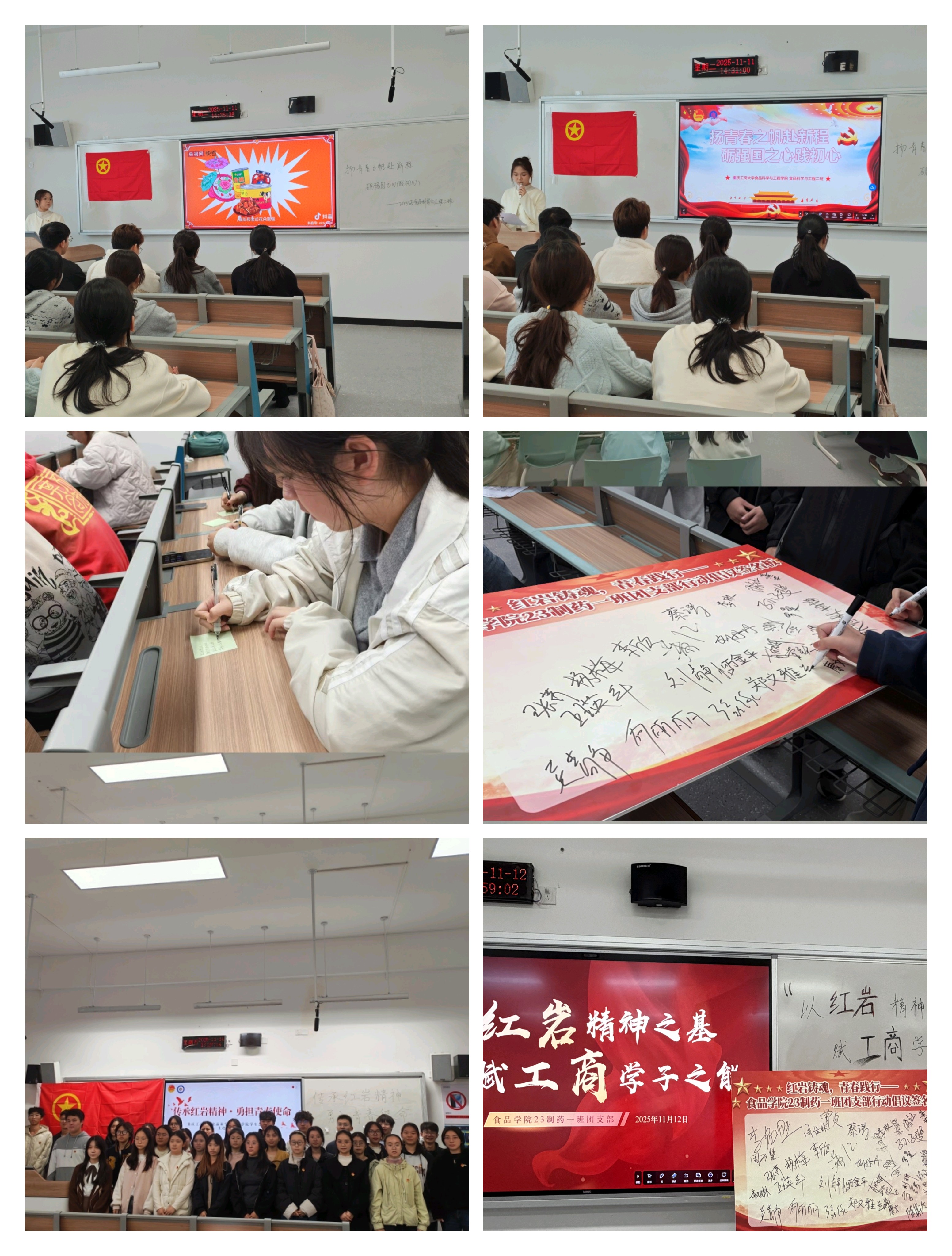为深入学习贯彻党的二十大和二十届四中全会精神,弘扬红色文化,激发广大青年的爱国热情与使命担当,食品科学与工程学院于11月10日至11月14日组织开展了“传承红岩薪火,勇担青春使命”主题团日活动。本次活动围绕“传承红岩精神·筑牢信仰之基”“砥砺强国之志·实践报国之行”“赋能青春赛道·扬帆时代新程”“传承重工商精神·奋斗青春韶华”四个主题方向,学院各班级团支部及院学生会积极参与,以多样形式、丰富内容推动红岩精神深入人心。