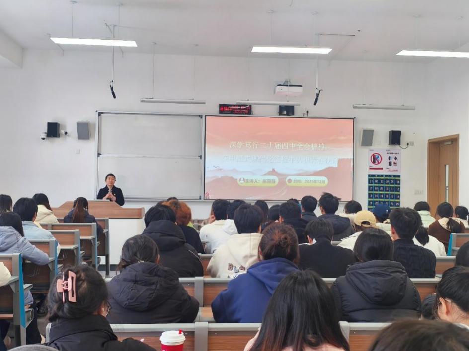 学院将提升学生骨干政治领悟力与实务执行力作为学习贯彻全会精神的先手棋。12月11日,学院举办学生组织管理能力培训会暨全体干部干事大会,分团委负责人刘畅主持并紧扣“责任与初心”主题,深度解读党的二十届四中全会 “进一步全面深化改革、推进中国式现代化” 的核心要义。培训结合全会系统思维、创新理念与学生组织优化服务、完善机制的现实需求,引导骨干从时代高度审视自身使命,为全院有效组织、深入宣讲全会精神锻造了政治强、业务精、作风实的骨干队伍。